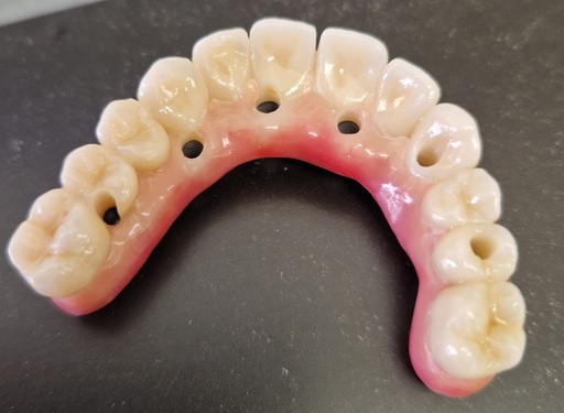 We offer a full range of prosthetic solutions, including acrylic and chrome dentures, with detailed stippling and colour-toned gingiva finishes to enhance realism. Using a combination of digital design and traditional finishing, we produce dentures that fit comfortably and look natural. For implant-supported prosthetics, we incorporate titanium structures where required to add strength and stability.